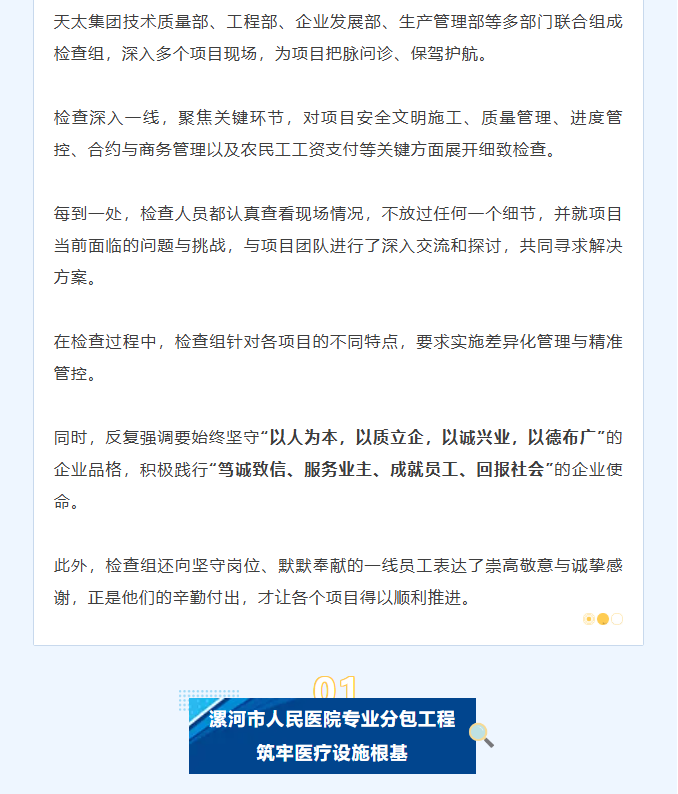 天太集团:多项目齐头并进,综合检查助力高质量发展